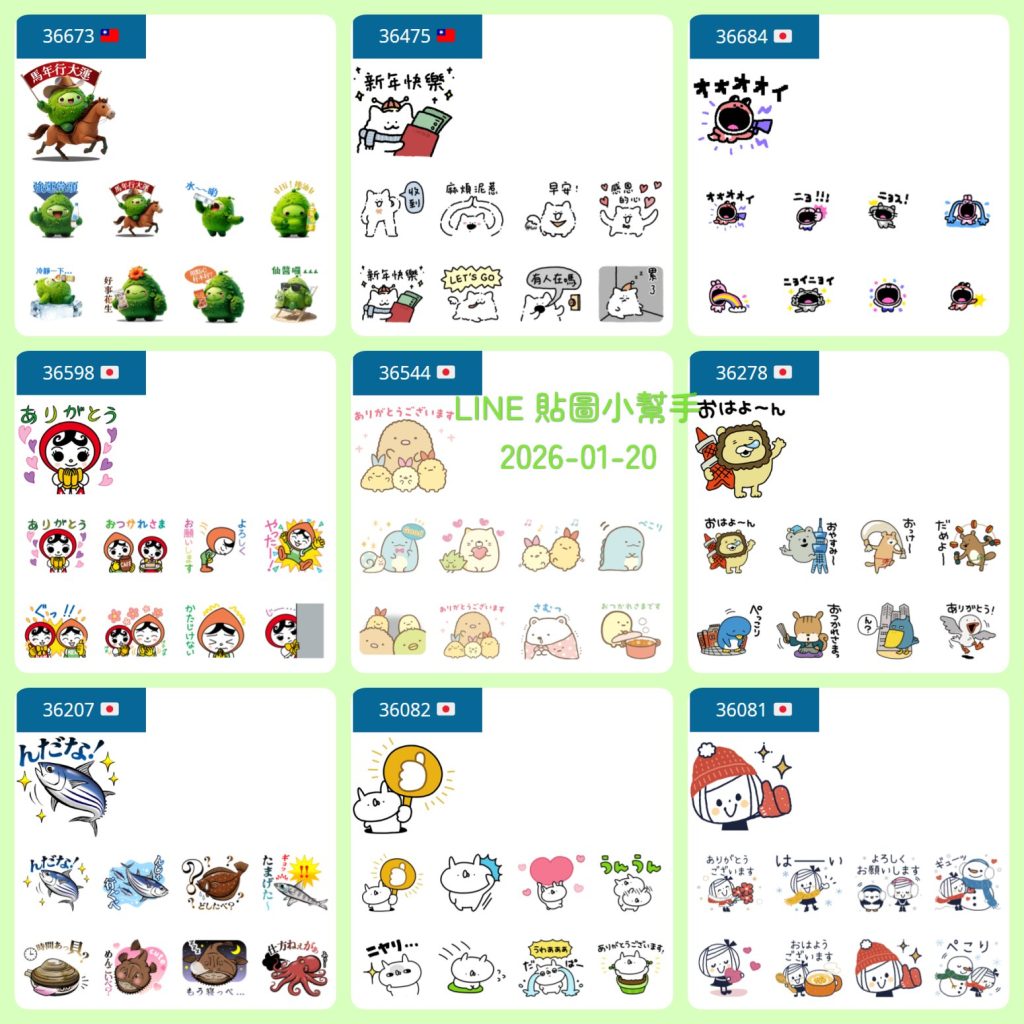 這周台灣沒有一般商家的免費貼圖,4組都是 LIN…