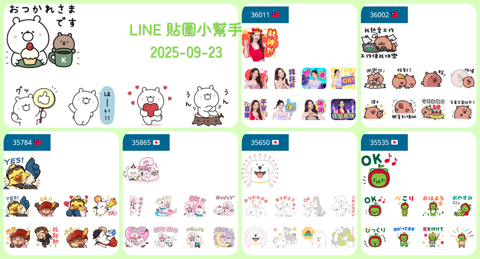 上一周的貼圖:LINE 免費貼圖 2025-09-16