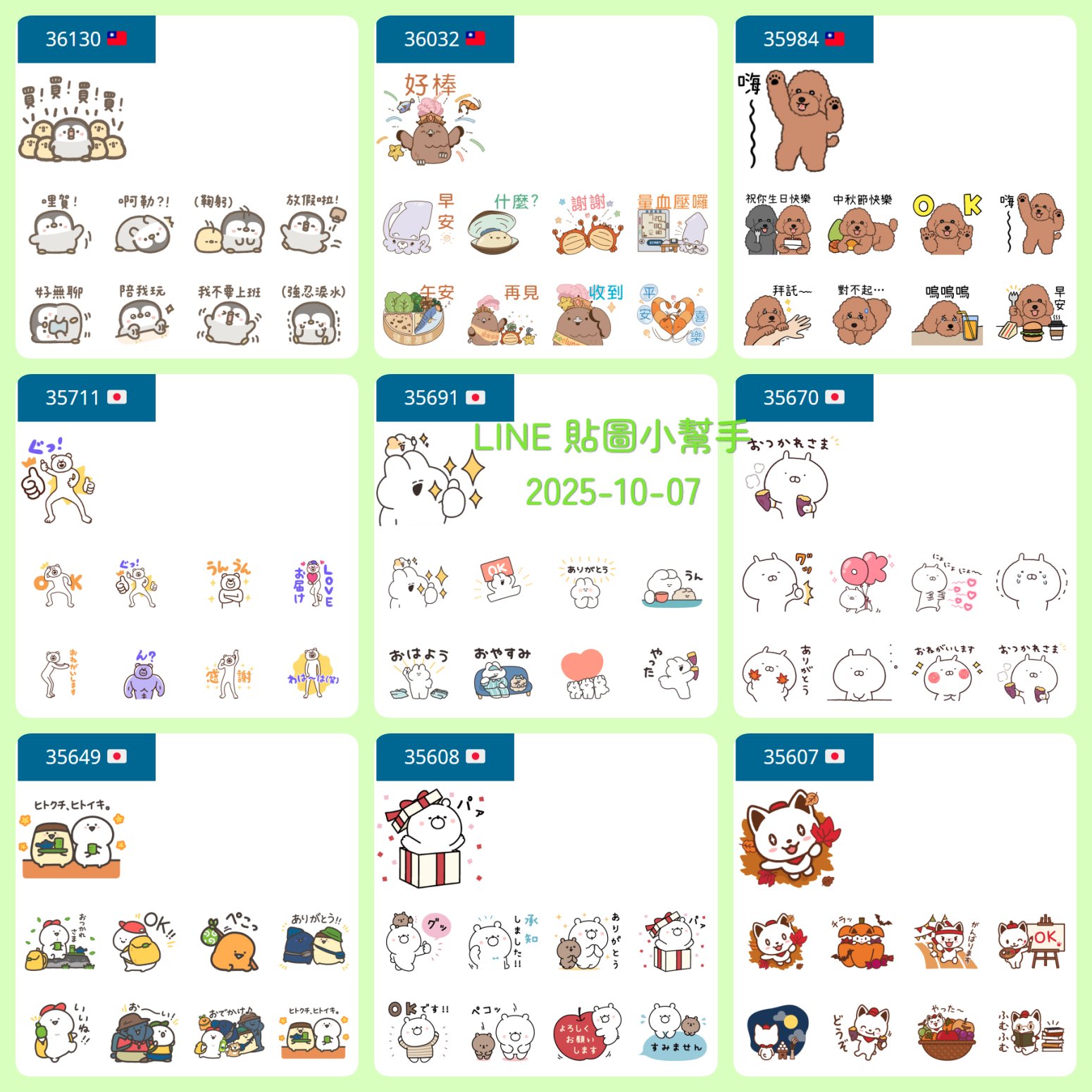 上一周的貼圖:LINE 免費貼圖 2025-09-30