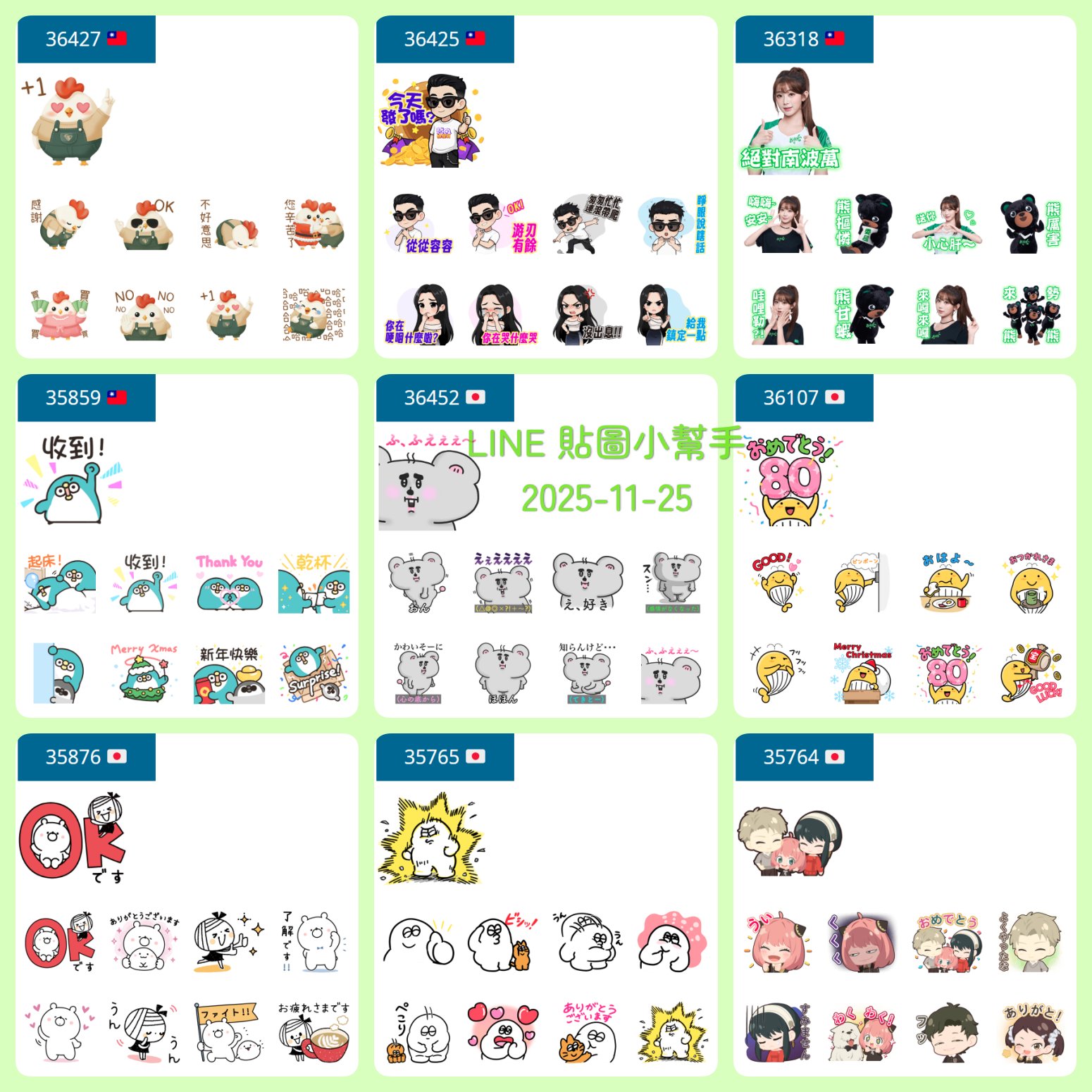 上一周的貼圖:LINE 免費貼圖 2025-11-18