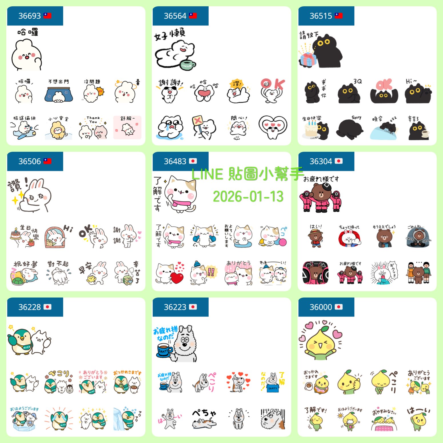 上一周的貼圖:LINE 免費貼圖 2026-01-06