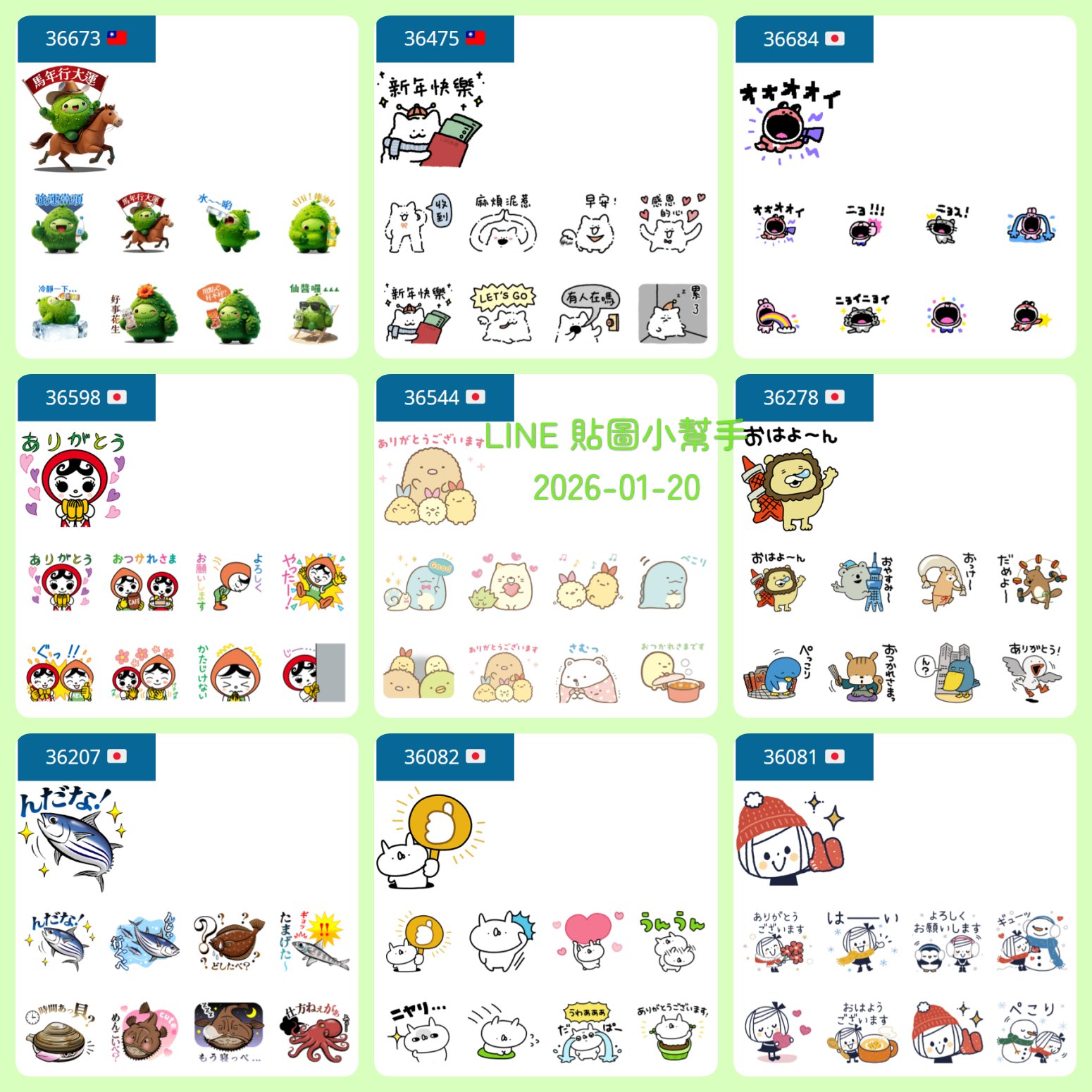上一周的貼圖:LINE 免費貼圖 2026-01-13