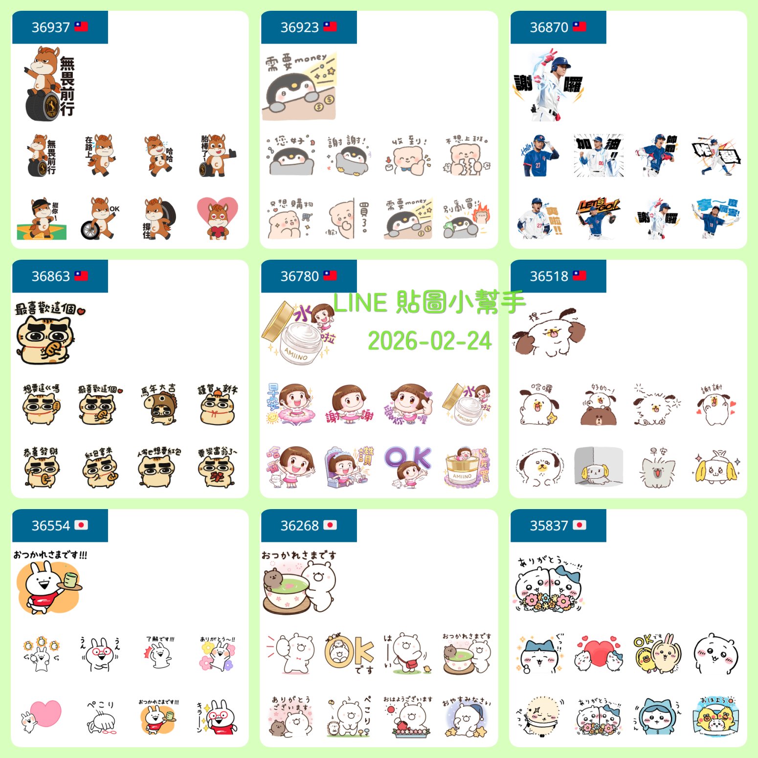 上一周的貼圖:LINE 免費貼圖 2026-02-17